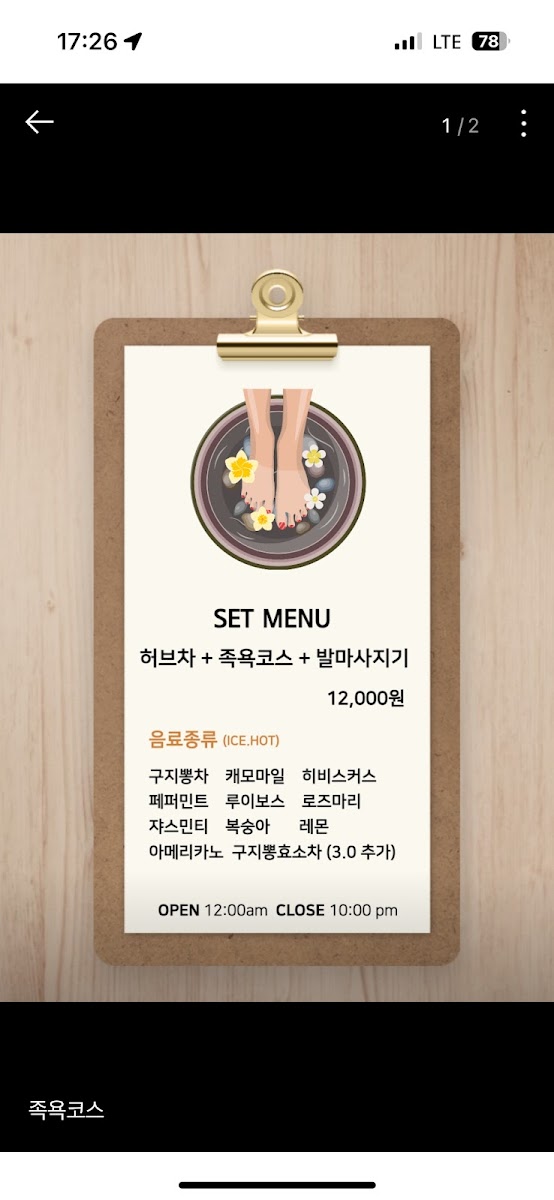 Rest Foot Bath Cafe (쉼 족욕카페) Menu